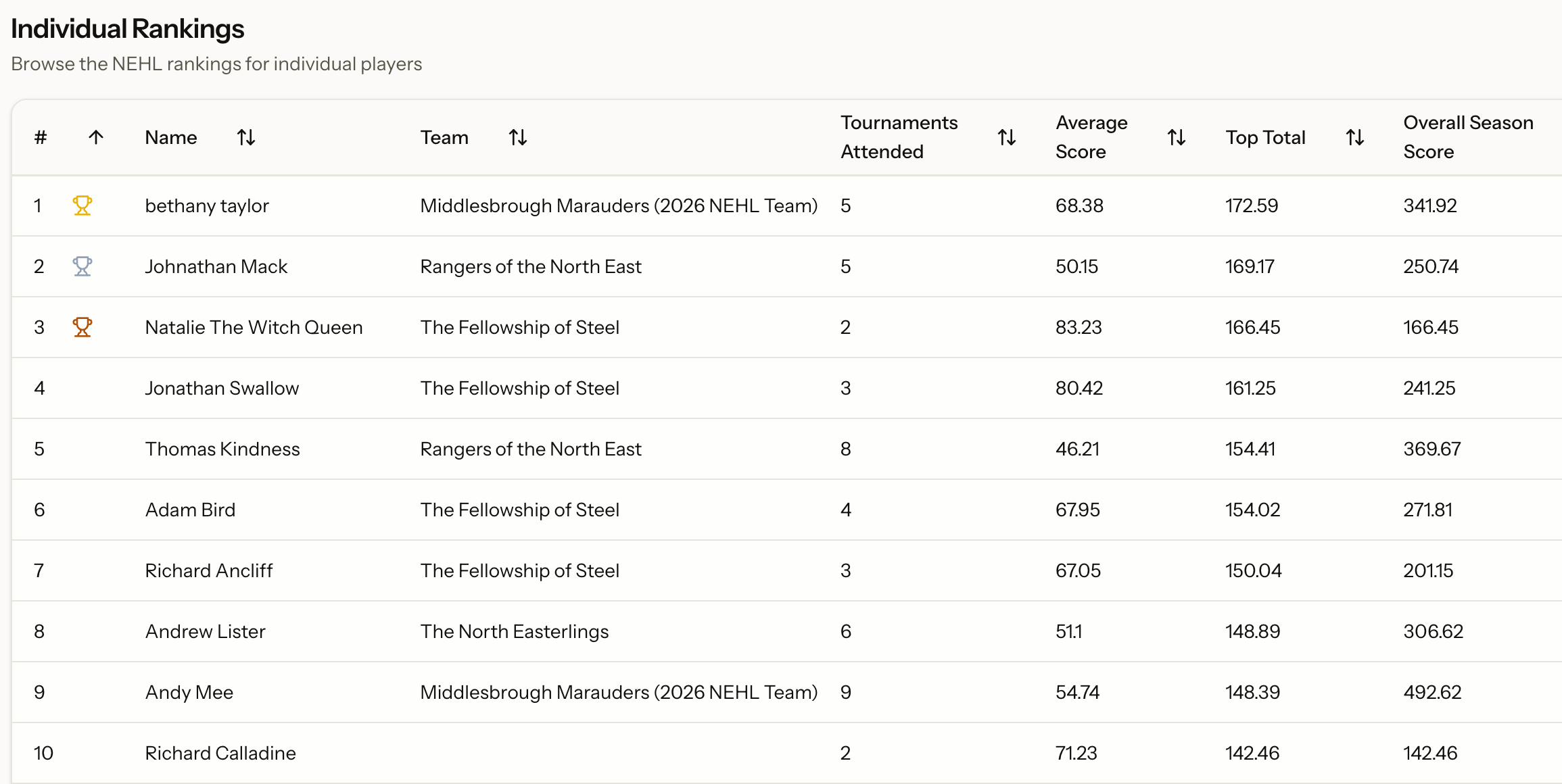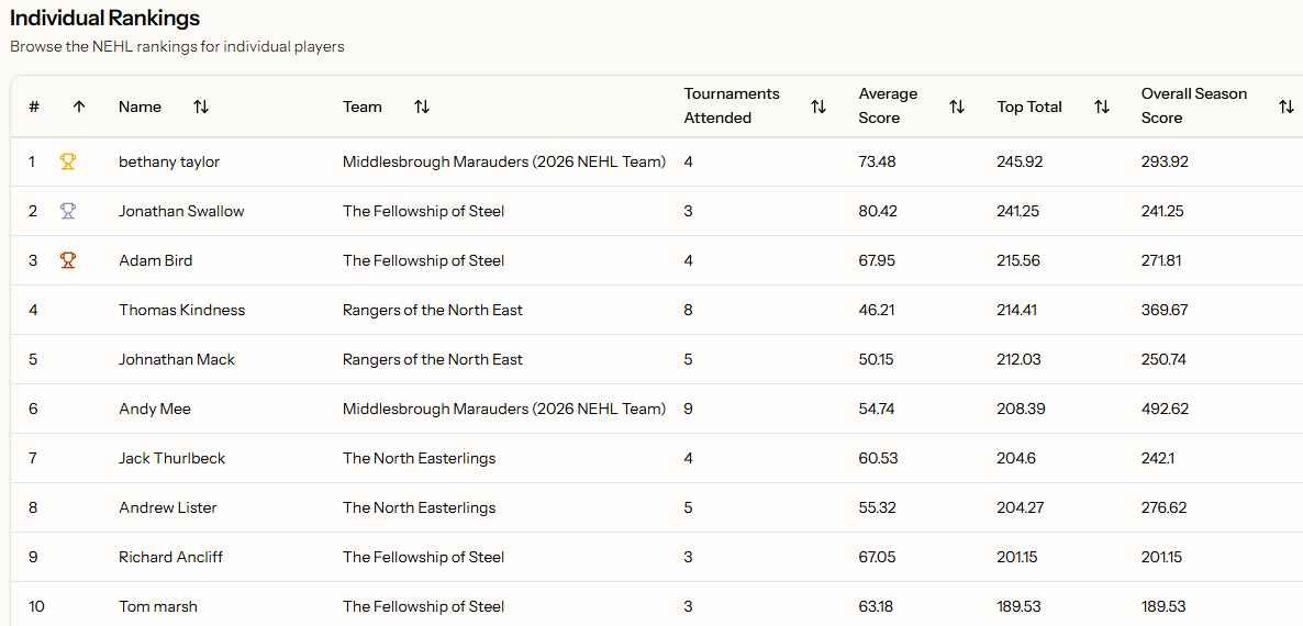We're three months into the 2026 NEHL season, and what a start it's been. With events running across the North East almost every week, the local MESBG competition is really starting to fire up. Before we look ahead to the second quarter, we have an important update on how individual rankings are calculated, and it has already changed things quite a bit.